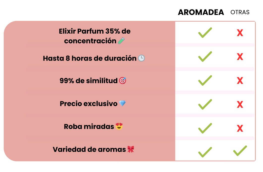 Las fragancias Aromadea están inspiradas en las más exclusivas casas de perfumería del mundo, logrando 99% de similitud en aroma, sensación y estela, pero sin pagar de más.